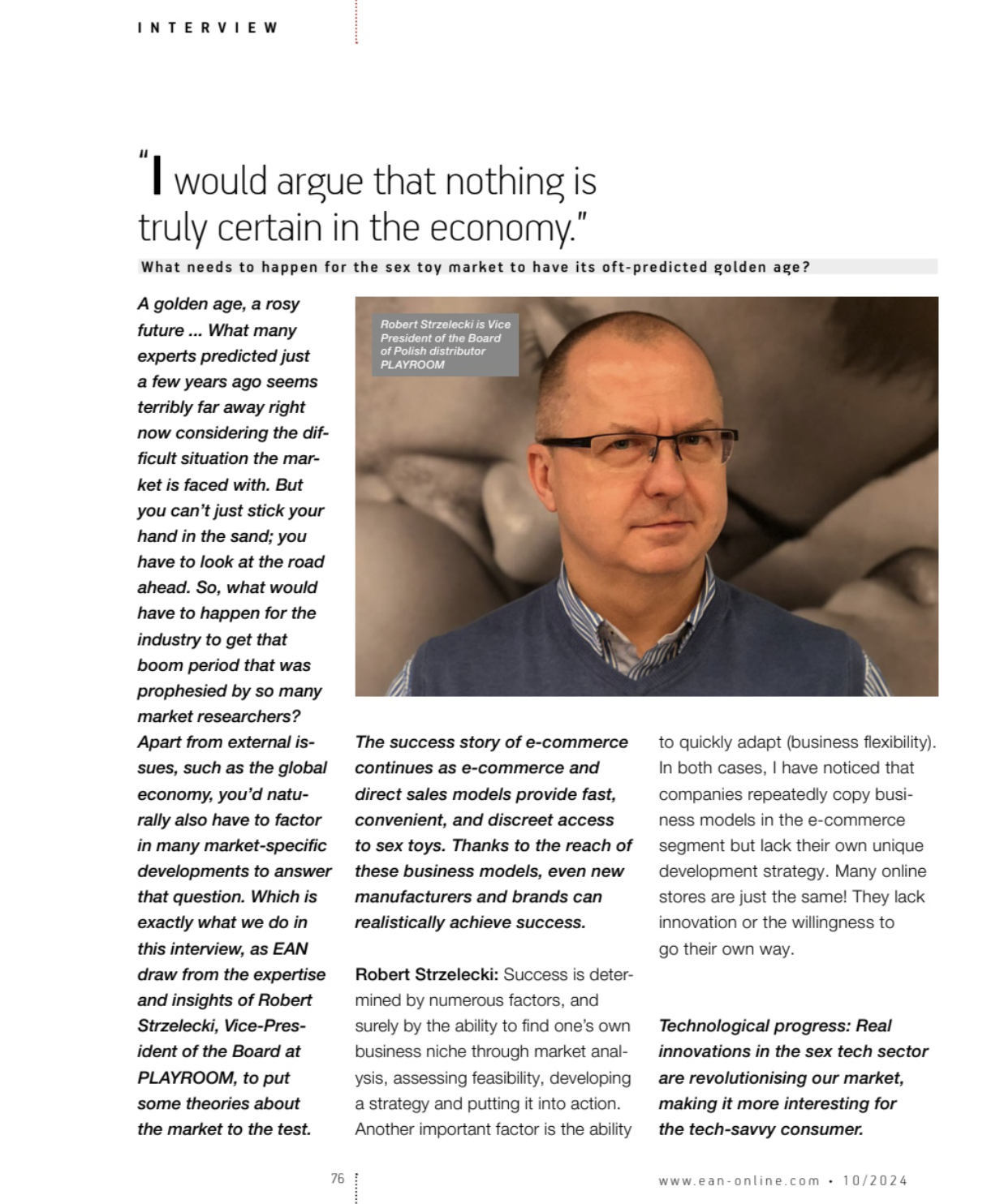 W październikowym wydaniu E.A.N. - branżowym wydawnictwie o tym, co w trawie piszczy jest wywiad z Robertem Strzeleckim - wiceprezesem Zarządu PLAYROOM. MImo że wywiad jest po angielsku to załączamy na blogu najważniejsze tezy z wywiadu: