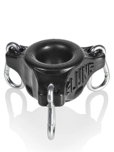 Oxballs Slung Ball Stretcher został zaprojektowany jako odpowiedż na metalowe lub skórzane obciązniki jąder. Wadą metalowych jest trudność dopasowania lub/i nic nie boli bardziej niż zaciskanie się na delikatnej skórze worka metalowych części metalowego obciążnika.