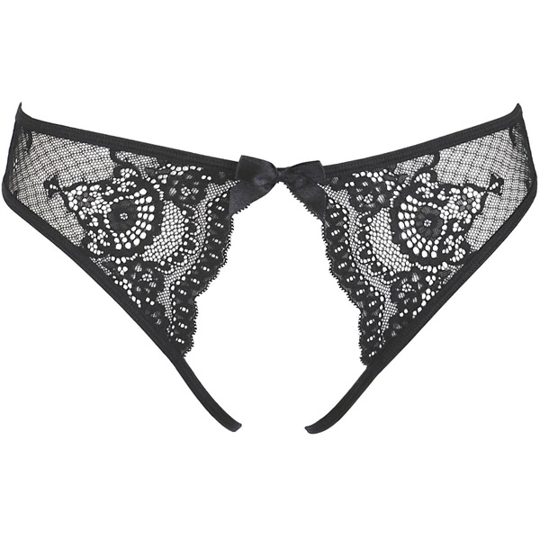 Całkowicie otwarte czarne figi pozwolą Ci odpłynąć w krainę zapomnienia i przyjemności z partnerem. Daj Wam tą rozkosz i niech poniesie Was fantazja ! Model łączy subtelna czarna koronka, która łączy się z tiulem z tyłu. W kroku wbudowane elastyczne paseczki zapewniający komfort noszenia.