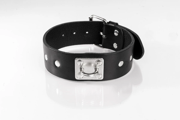 Crafted from thick, hand-finished leather, the collar combines pure functionality with the aesthetics of dominance. A single row of studs leads the eye – and the mind – toward the inevitable: a boundary not to be crossed without permission. Their cold gleam contrasts with the matte leather surface, creating a composition full of tension, anticipation, and silent recognition of roles.