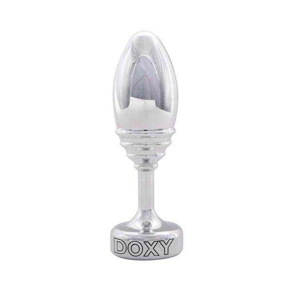 Tapered Butt Plug Ribbed from Doxy made out of solid aluminium with stimulating grooves. The engraved base works as a stopper and gurantees safe handling without the plug sliding in too far. This means that the wonderfully heavy plug can also be worn over longer periods of time.
