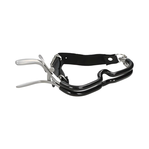 This type of Jennings Mouth Gag has been transformed from a clinical tool into a fetish machine of oral discipline. The steel clamps stretch the jaw, while the adjustable leather harness secures the device in place – no option to close, no chance to refuse.