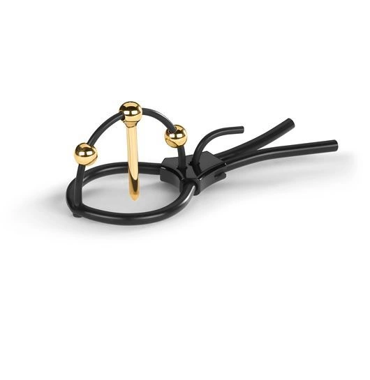 For the fancy: Plunging Pete is a bipolar corona strap with a 24K gold-plated urethral sound (? 4 mm, 35 mm long) flanked by two golden balls, which serve to create an extremely concentrated, tingling or pulsating stimulation – because, where the gold touches the skin, the stimulation is bundled, making it particularly intense.