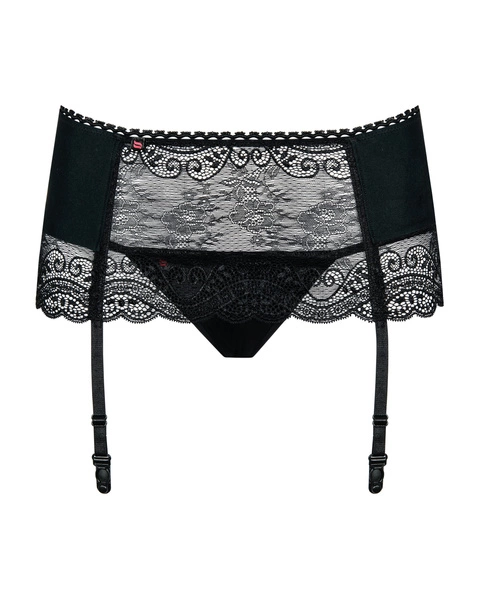 Obsessive Miamor is a sensual garter belt that combines classic elegance with intricate finishing. Made from elastic, soft material in a deep black color, it perfectly fits the body and beautifully accentuates the waist and hips, giving the silhouette an alluring character.