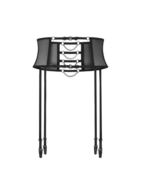 The adjustable circumference allows for a perfect fit, accentuating the waistline and giving the silhouette enticing proportions. Black metal details and subtle chains introduce a touch of fierceness, building tension and adding a mysterious provocation. Every element has been designed not only to adorn the body but also to become an integral part of an intimate game, igniting desire and pampering the senses.