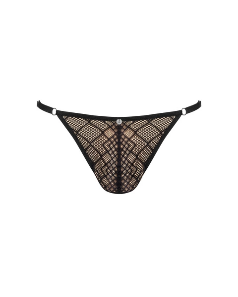 The Severio thong is designed for men who enjoy surprising and embracing bold, unconventional choices. The black fabric with a subtle sheen and geometric diamond pattern gently reveals the body, while thin straps and metal rings add a distinctive edge. An adjustable waistband ensures a perfect fit, and the silver pendant serves as an intriguing detail. The soft material caresses the skin, offering comfort and full freedom of movement.