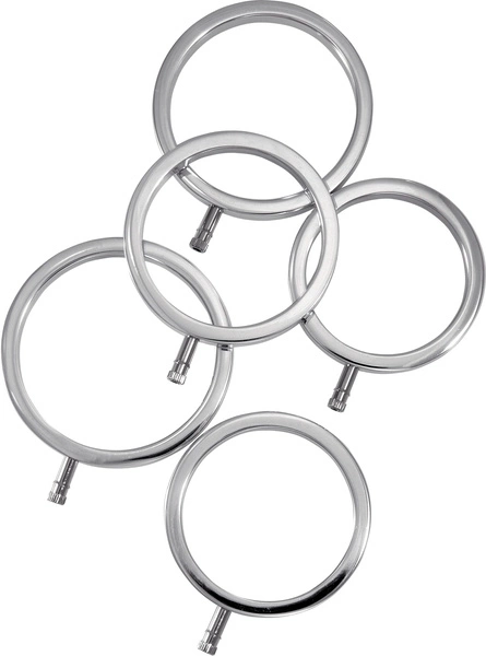 Electro Sex Cock Rings are crafted from solid metal bar to ensure a fine smooth finish. Only two of the cock rings are used but the ElectraRings Pack consists of five different size rings to accomodate different size and fit variations. Use one ring at the base of your cock and one further up the shaft. Alternatively you can use one cock ring in conjunction with a uni-polar ElectraProbe. Use the electro conductive gel (Sundries/Gel & Lube) with this item.