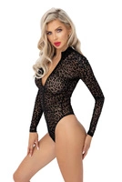 Body F287 Leopard Flock Bodysuit XL Noir Handmade