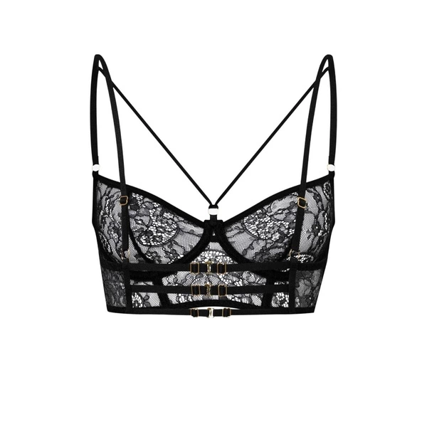 Prześwitujące miseczki sprawiają, że koronkowy wzór jest widoczny na skórze, tworząc niesamowity efekt. Szeroki obwód pod piersiami i eleganckie paski na dekolcie dodają bieliźnie Promees Abigail klasy i nuty erotycznego stylu. Złote akcenty w zapięciach i regulatorach dopełniają całości, tworząc unikalny biustonosz, który idealnie współgra z Twoimi potrzebami.