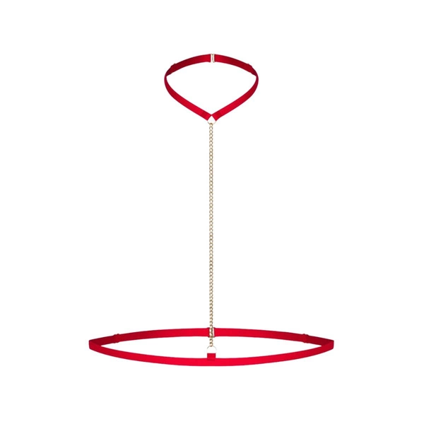 Choker Promees Alice Red został wykonany z wysokiej jakości materiałów, dzięki czemu delikatnie otula skórę, zapewniając komfort noszenia. Składa się z dwóch cienkich paseczków, z których jeden obejmuje szyję, a drugi podkreśla linię pod biustem. Połączone złotym łańcuszkiem, tworzą spójną całość, która nadaje szyku i charakteru każdej stylizacji.