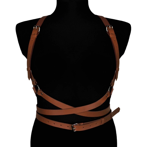Podkreślony kobiecy kształt i wyjątkowy wygląd z brązową skórzaną uprzężą na ciało Karess Noemi