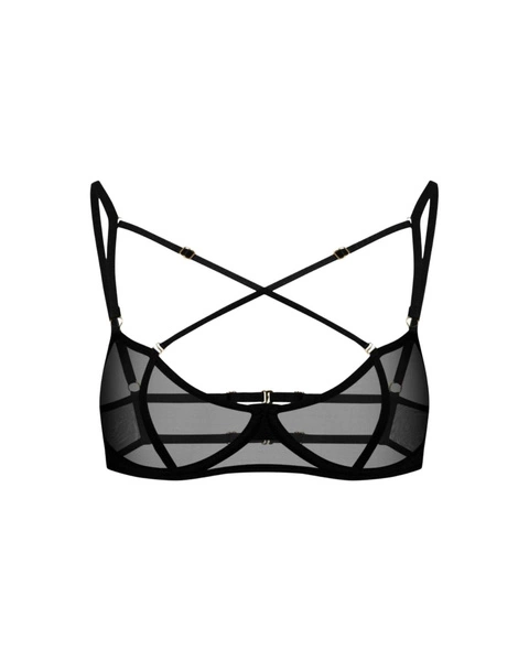 Prześwitująca bielizna z siatki – biustonosz erotyczny z paskami