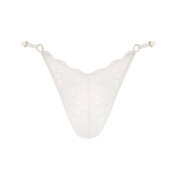 Delikatna koronka, otulająca przód bielizny, jest miękka i elastyczna, co sprawia, że stringi Promees Estela White XS/S doskonale przylegają do ciała. Stylowa lamówka na tyle dodaje całości wyrafinowanego charakteru. Wyjątkowym akcentem są złote metalowe detale, które wprowadzają nutę luksusu.
