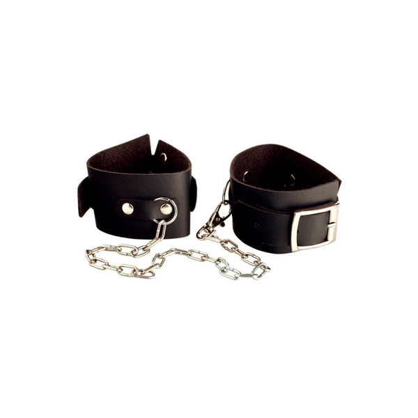 Kajdanki wykonane są z miękkiego, regulowanego materiału imitującego skórę, który delikatnie oplata nadgarstki lub kostki, zapewniając jednocześnie stabilność i wygodę. Obie opaski są połączone solidnym metalowym łańcuchem, który dodaje całemu zestawowi charakteru i pozwala na ograniczenie swobody ruchu – tyle, ile chcecie. To narzędzie, które buduje napięcie bez strachu i dyskomfortu.