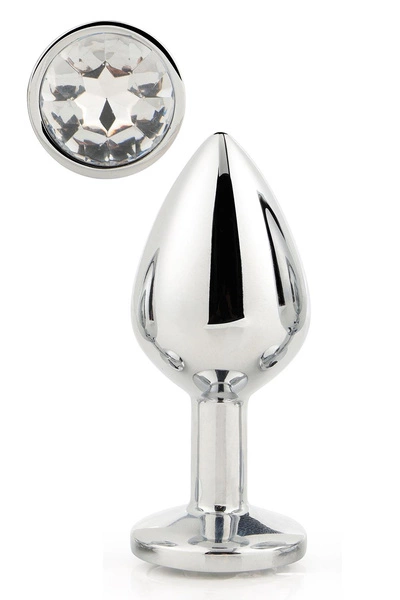 Średniej wielkości błyszczący korek analny z kamieniem szlachetnym z kolekcji Gleaming Love to elegancka i funkcjonalna zabawka erotyczna. Wykonany z gładkiego, lekkiego aluminium, jest bezszwowy, co zapewnia wygodę i łatwość użytkowania. Rozszerzona podstawa zapewnia poczucie bezpieczeństwa, utrzymując kamień szlachetny w wygodnej pozycji między policzkami.