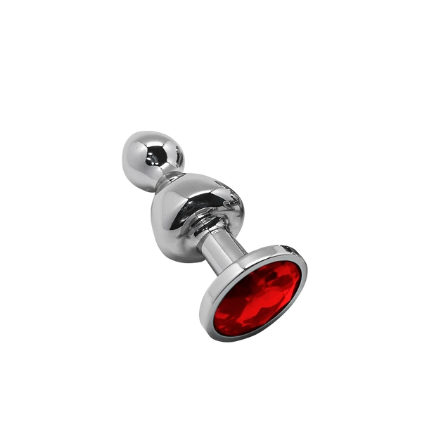 Lollypop Double Ball Metal Plug L Red – metalowy korek analny z czerwonym kryształem, rozmiar L