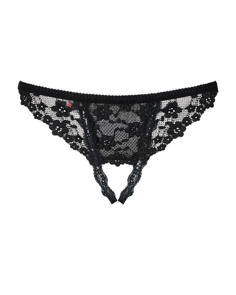 Letica to stringi stworzone z myślą o odważnych kobietach, które cenią sobie lekkość, komfort i pikantne wykończenie. Koronkowa tkanina z kwiatowym wzorem zachwyca swoją subtelnością, a otwarty krok dodaje niegrzecznego uroku. Elastyczna gumka otula biodra, dopasowując się do każdej figury. Idealne na noc pełną ekscytujących wrażeń.