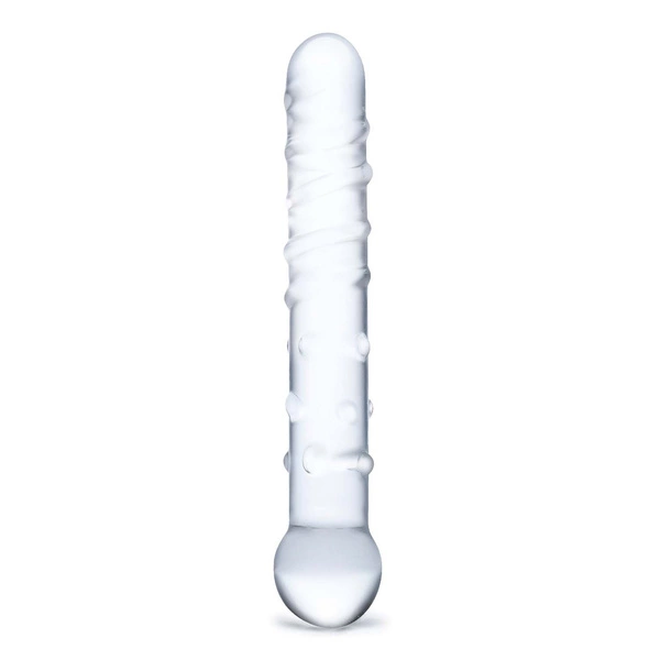 Niech Cię nie zwiedzie minimalistyczny design tego dilda, zostało ono zaprojektowane dla maksymalnych orgazmów. Spiralne grzbiety i grube wypustki wymasują wszystkie Twoje wewnętrzne krzywizny. Pokochasz stymuluje punkt G jaką daje ta zabawka. Dla urozmaicenia można je podgrzać lub ochłodzić. Wykonane jest z bezpiecznego i hipoalergicznego szkła borokrzemowego, łatwego w czyszczeniu. Atutem szklanych zabawek jest to, że można używać ich z lubrykantami każdego typu.